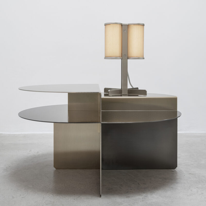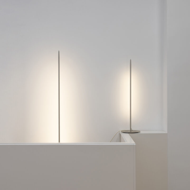 Realizzate in alluminio ed acciaio con elementi assemblati insieme alla fonte illuminante a led, le lampade vengono prodotte personalizzando dimensioni, materiali, colori, e finiture, così come i tavoli, le poltrone e gli oggetti di design prodotti su disegno dello studio.
